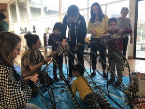 Keep Suffolk Beautiful then contacted art teachers at three public high schools asking for volunteers to come out and fill the sculptures. On high school students, parents and younger volunteers turned up at the Suffolk Art Gallery to sort the balloons into colors and fill the sculptures. Pieces of clam netting found on one of the beaches was cut and sewn to the sculptures making a “skin” to hold the balloons. After 6 hours the two sculptures were finished and ready to go on display.
