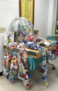 You may have seen the Seatack Community Garden in the headlines recently. Virginia Beach native, Pharrell Williams, was on hand for the ribbon-cutting ceremony to celebrate the addition of 16 new raised garden beds as a community project for the Something in the Water Festival. Pharrell was also the inspiration for the “Happy” scarecrow made of scrap metal and other found objects. Other artistic touches can be found in the upcycled tire planters and the hand painted billboard-style signs in the garden. Step inside the cafeteria and you’re greeted by the “Trash Talking Turtles” and their octopus friend. These are just some of the many treasures you find when visiting this school.